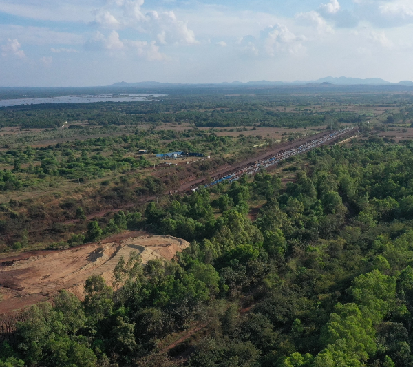 In order to provide seamless rail connectivity for the movement of Iron Ore from the mining areas to the final destination, a private siding is developed to connect MEPL Mines to the main Indian Railways network. This Railway spur line was laid over 10.5 km and is called MMEC Siding.